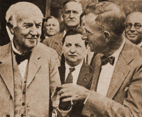 "Thomas Alva Edison, dean of American inventors, is here pictured accepting the fifth medal awarded by the New York City Rotary Club "for service." Rober Stout, immediate past president of New York Club, made the presentation in Mr. Edison's library, at West Orange, New Jersey."